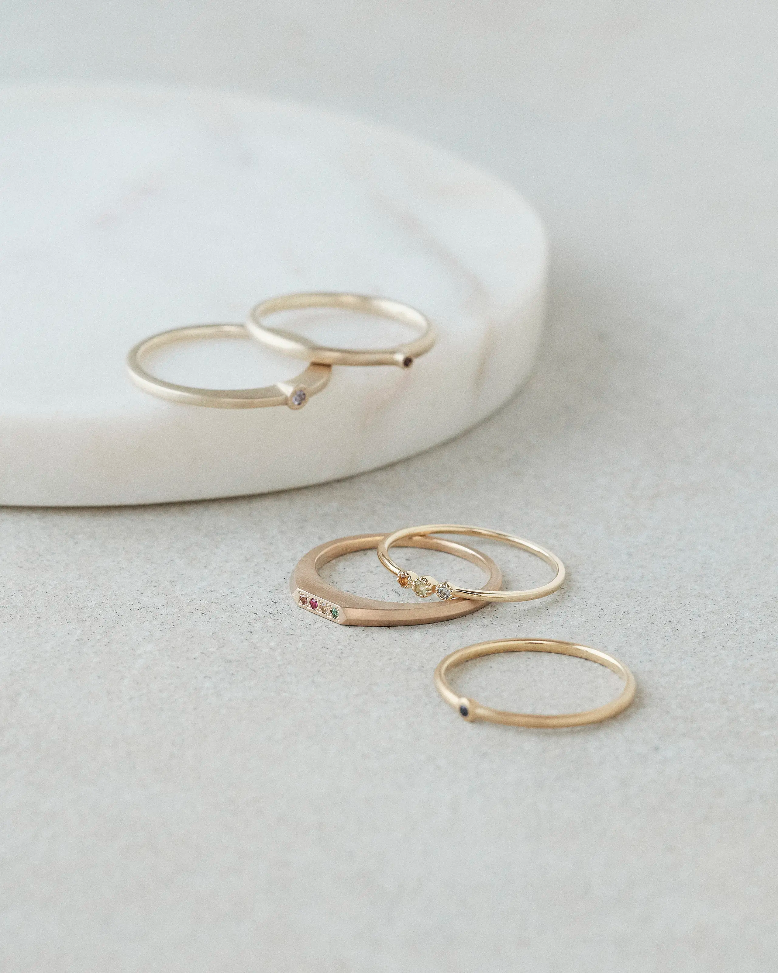 1石から5石まで誕⽣⽯が選べる「Birthstone Ring_milgrain」をはじめとしたコレクション。お好きなアイテムのデザイン、⽯数、⽯⾊を選ぶことができます。好みの⾊を組み合わせてみる。すべてをダイヤモンドにしてみる。あなただけの組み合わせを楽しむことができます。