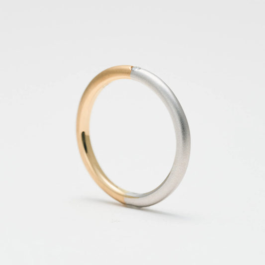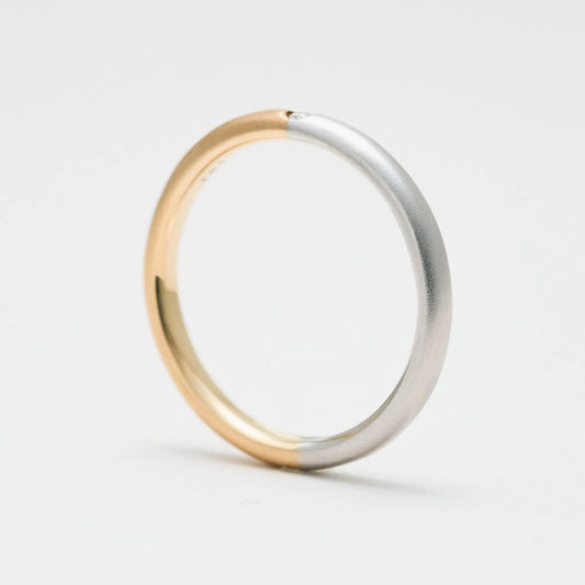 プラチナとイエローゴールド、2つの異なる素材を熟練の技でつなぎあわせたコンビデザイン。