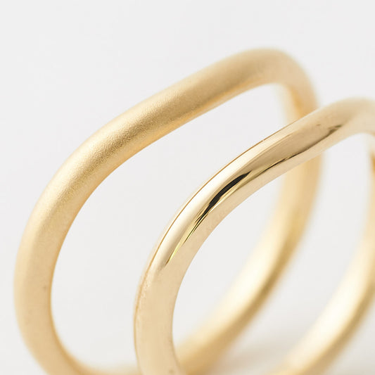 1本の金線を丸めてつなげるイメージをかたちにした、もっともプレーンなデザイン。