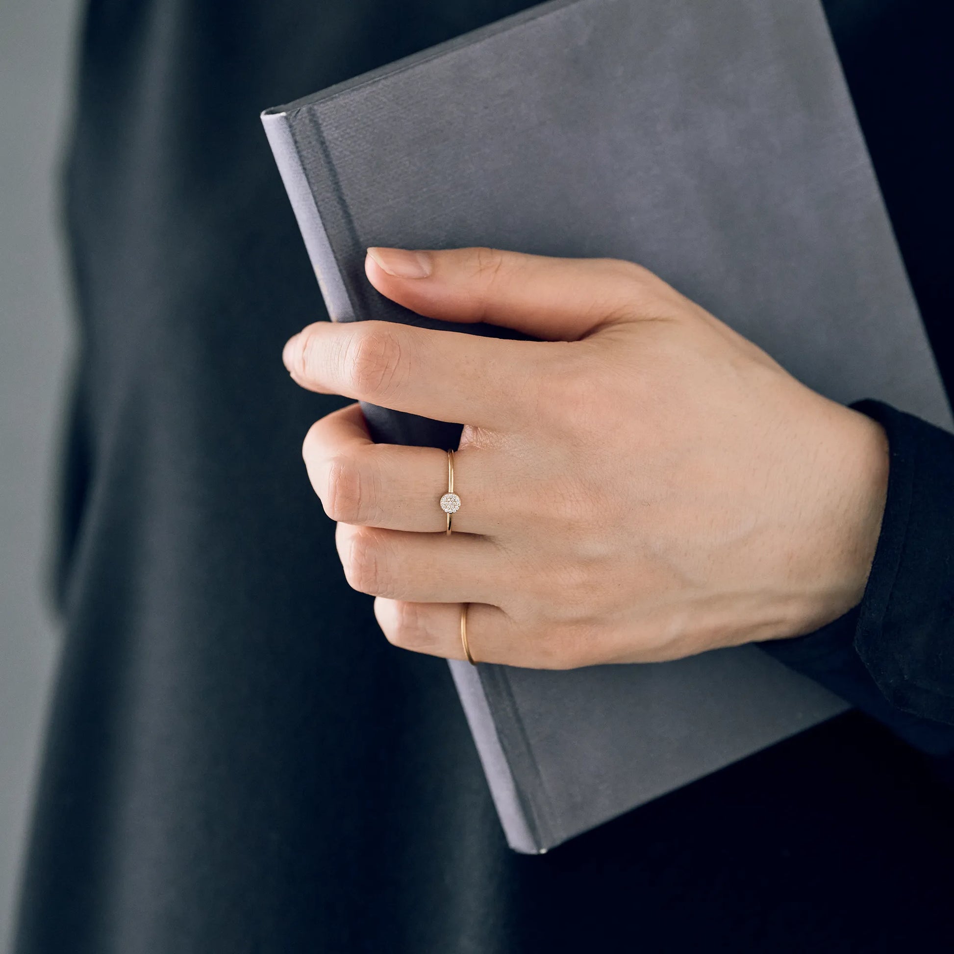 A micro pavé diamond ring set with tiny diamonds less than 1mm in diameter. Skilled artisans set each stone by hand using a microscope, creating a brilliance that rivals that of a single diamond. This is the 0.03ct type. Made with "K18 Hard" material, which is less prone to bending and scratching compared to "K18".