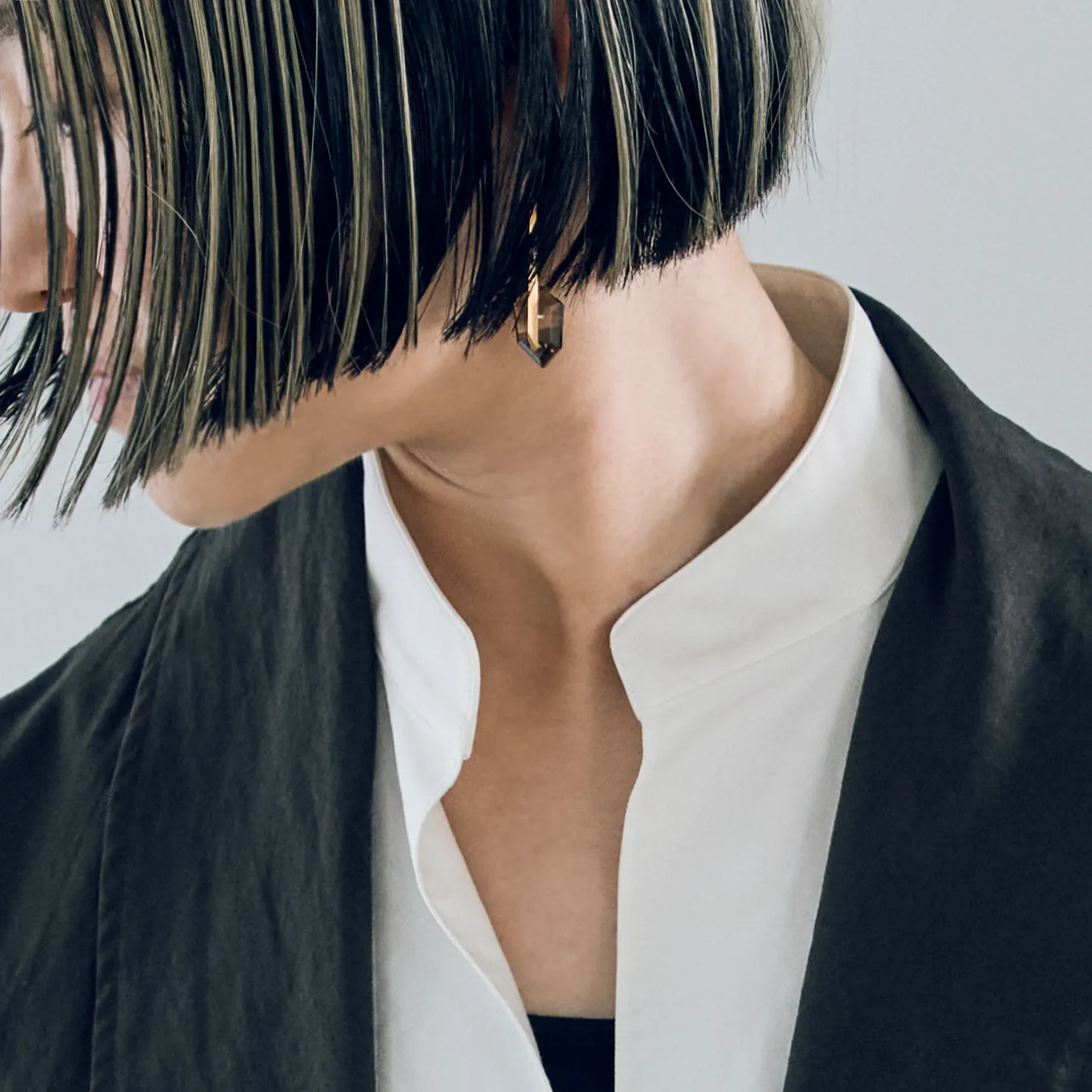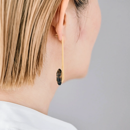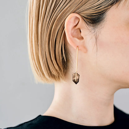 Random Facet Gemstone Earrings Staple LongRandom Faceted Gemstone Pierce_staple/long (Bicolor Smoky Quartz)