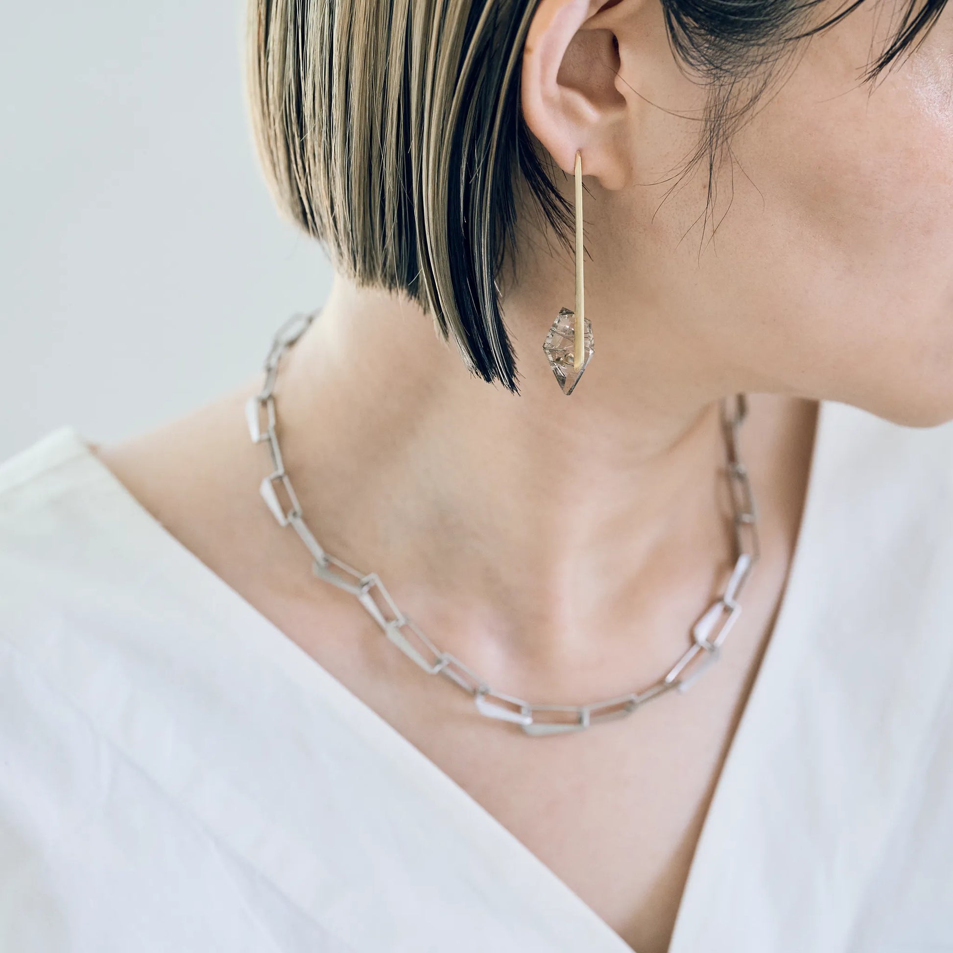 Random Facet Gemstone Earrings Staple LongRandom Faceted Gemstone Pierce_staple/long (Rutilated Quartz)