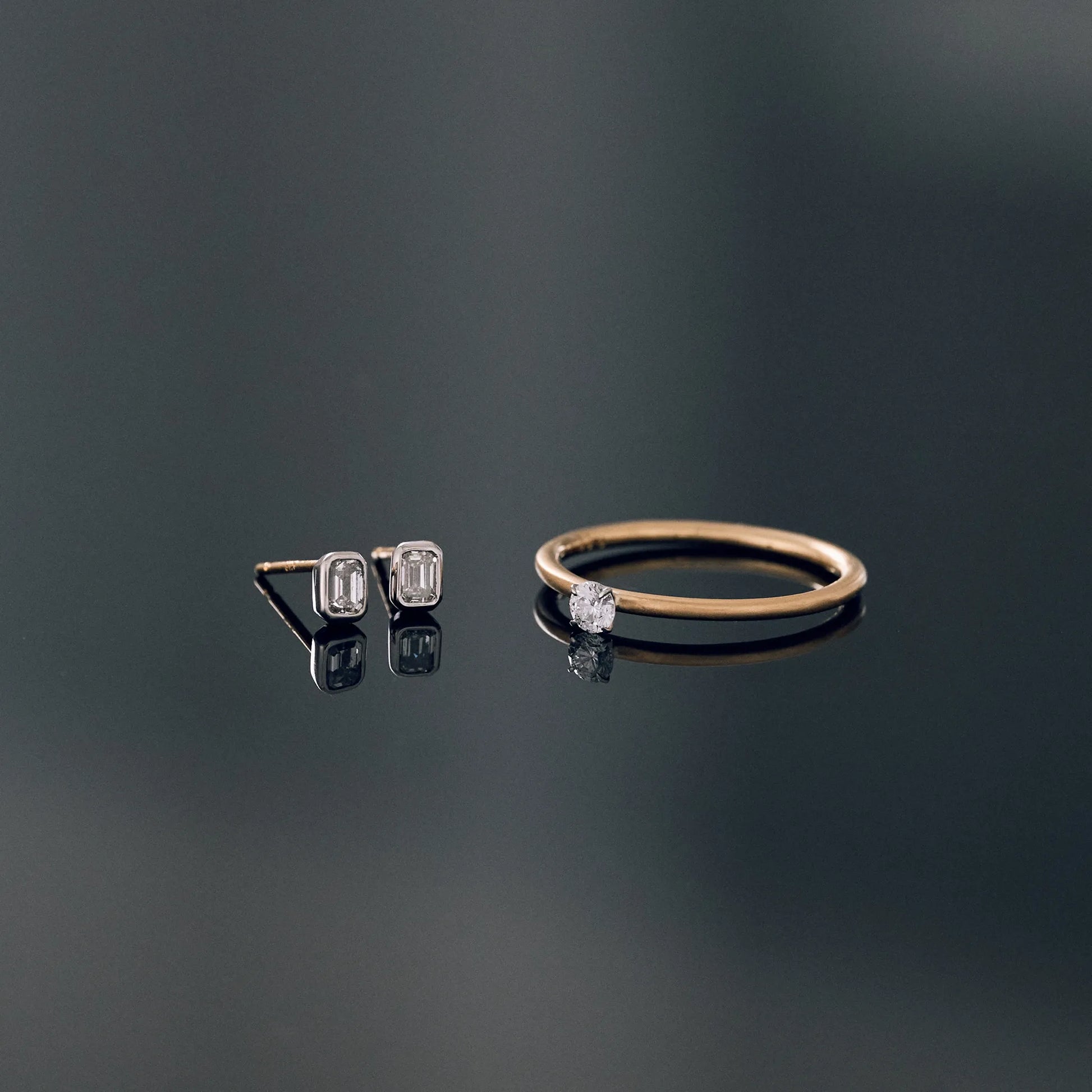 ダイヤモンドの白さがいっそう際立つよう、石座にはプラチナを採用。石を覆うように留めることで、透明感のある輝きがすっと引き立ちます。ポストにはK18イエローゴールドを合わせ、異なる金属のコントラストが耳元に奥行きを添えるデザインに。ダイヤモンドのサイズは「0.09ct」と「0.14ct」の2サイズから選べます。