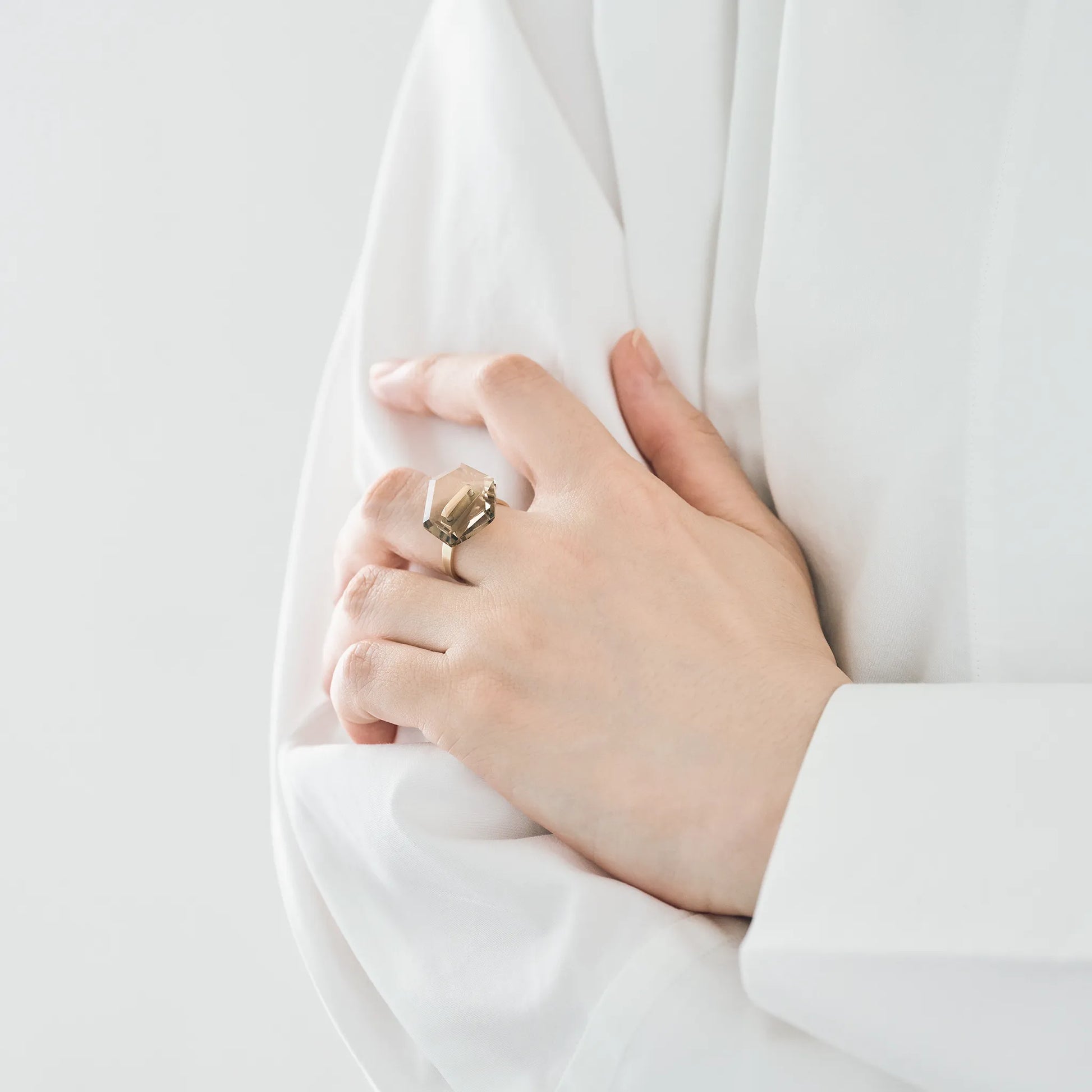 ランダムファセットジェムストーンリング ステープルRandom Faceted Gemstone Ring_staple(バイカラースモーキークオーツ)