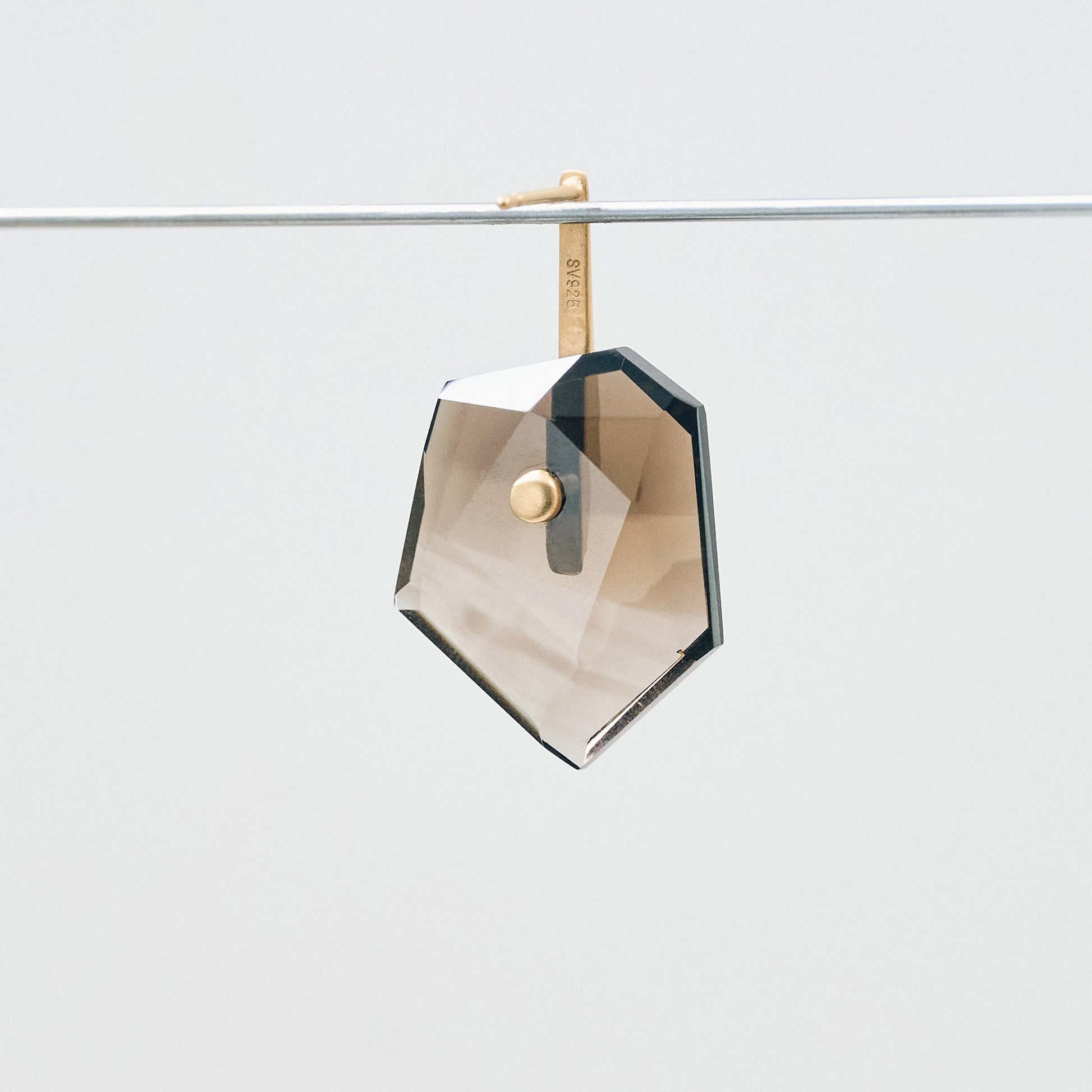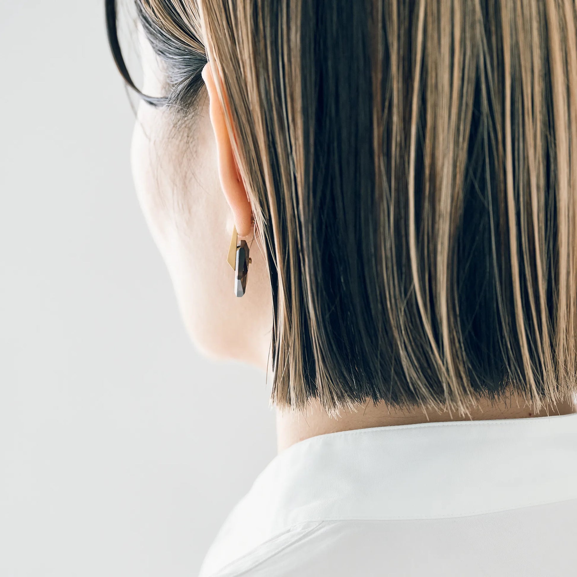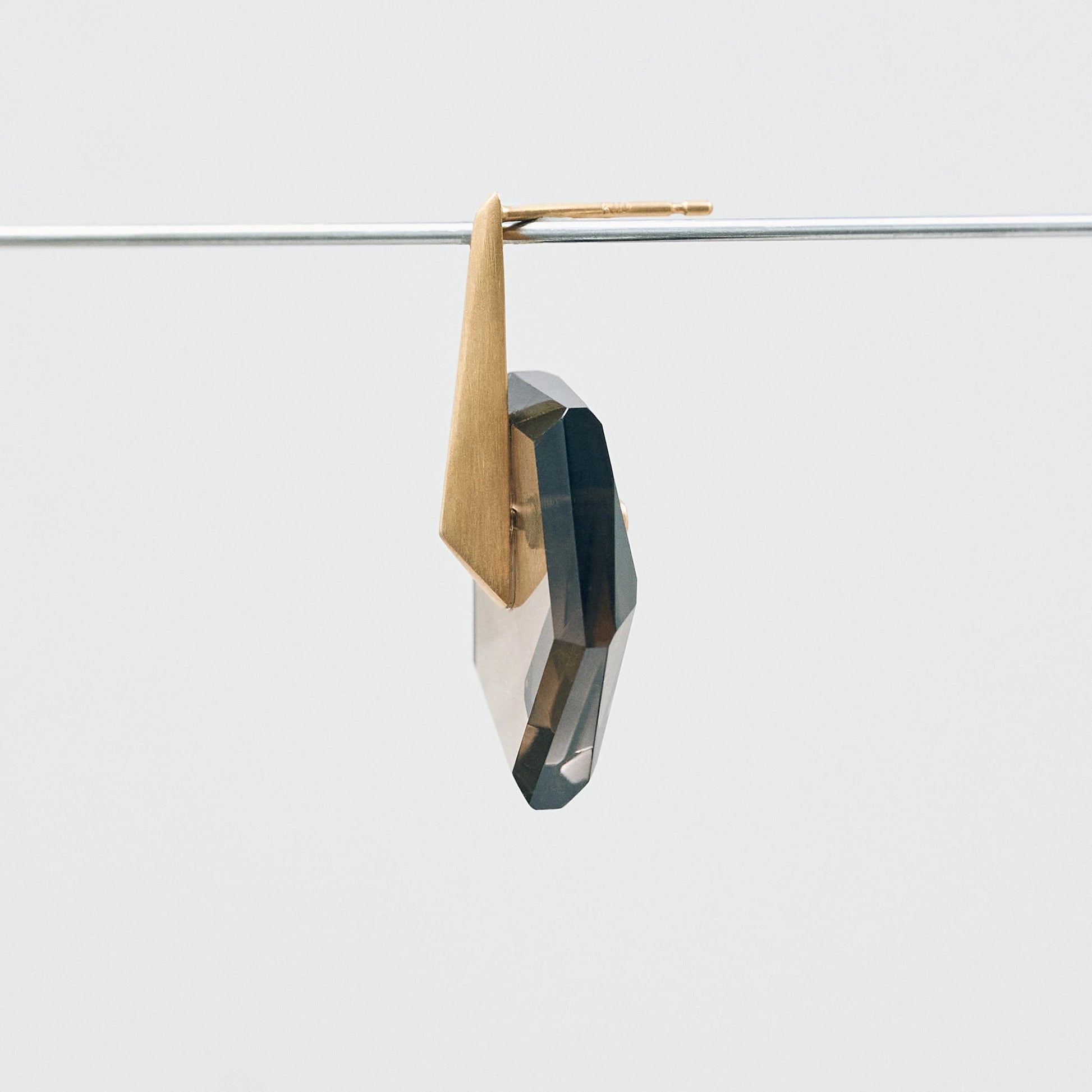 こちらは、バイカラースモーキークオーツをあしらったショートタイプ。構築的なフォルムに、自然が生んだグラデーションの揺らぎが重なります。